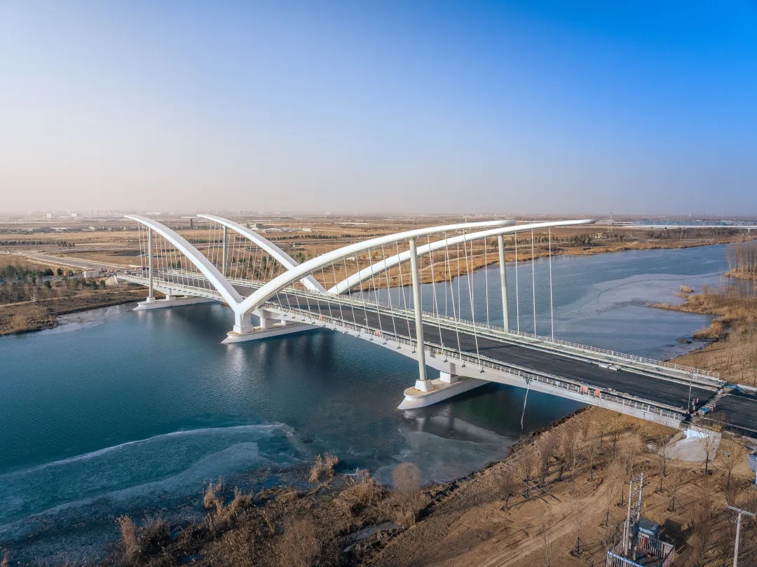 “花式跨越”彩虹橋——京雄城際鐵路跨大廣高速系桿拱橋,是京雄城際鐵路的重要組成部分,對完善京津冀區域路網布局、構建快速立體式交通體系有重要意義。巨力索具承接該橋上部結構施工。