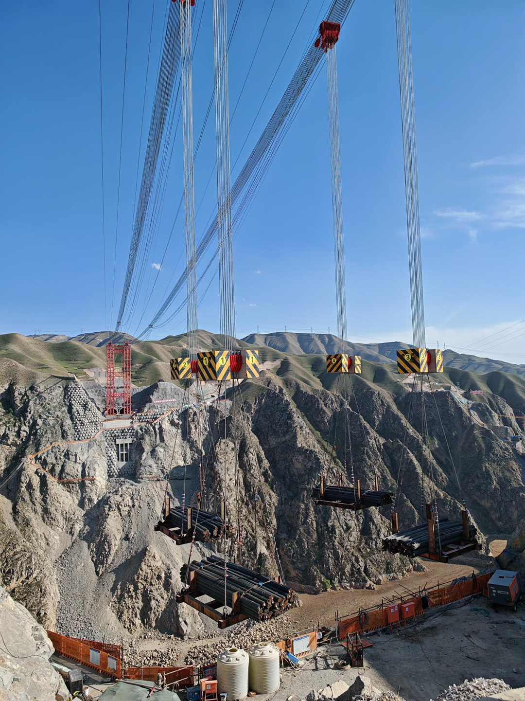針對大跨度峽谷吊裝、超重鋼結(jié)構(gòu)拼裝及毫米級安裝精度等挑戰(zhàn),巨力索具工程項目團隊通過多輪技術(shù)論證與工藝創(chuàng)新,成功攻克纜索吊裝系統(tǒng)設(shè)計、高精度同步提升等核心技術(shù),確保了試吊作業(yè)的順利進行。