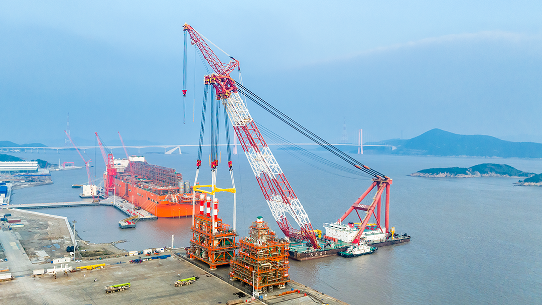 在裝置建造過程中,巨力索具承擔(dān)了該“海上移動化工廠”上部模塊的吊裝集成任務(wù),為項目量身定制了5000T吊梁系統(tǒng)。這套裝備需承受FLNG模塊吊裝過程中的動態(tài)載荷,技術(shù)要求遠超常規(guī)海工項目,是項目建設(shè)中技術(shù)難度最高、風(fēng)險最大的環(huán)節(jié)之一。