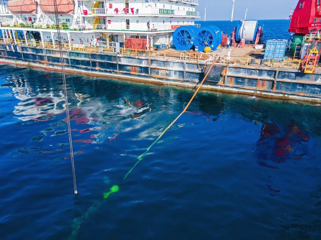 6月7日,海上漂浮式風機永久系泊索在廣東陽江項目場完成水下鋪設,為后續(xù)海上風機浮式基礎平臺到達安裝打下堅實基礎。