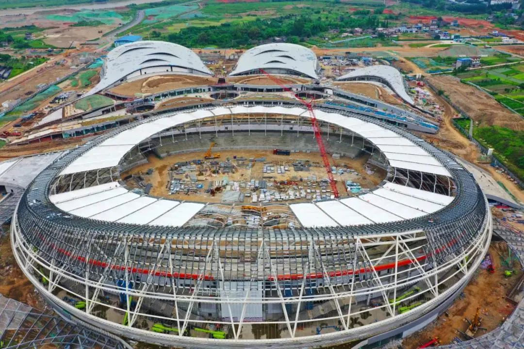 樂山市奧林匹克中心項目位于市中區蘇稽鎮,是2022年四川省第14屆運動會主場館。項目建設內容包含“一場三館”,總占地面積約339畝,建筑面積約20.78萬平方米,項目總投資約24.76億元。其中,巨力索具承包屋面索結構的施工。