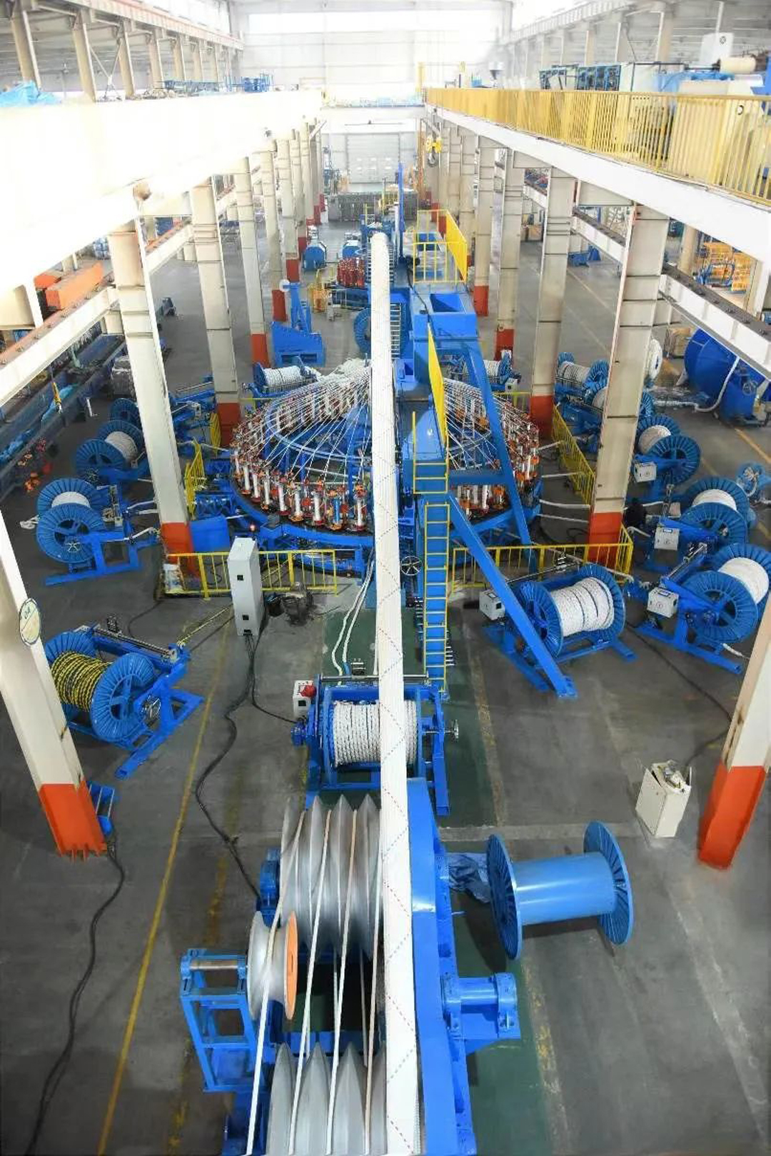 該平臺配置了4個單個浮體方陣,巨力索具結合浮體方陣鋼架結構型式、尺寸及浮體方陣之間連接方式等要求,設計研發了平臺主纜、平臺間交叉連接纜 、平臺間非交叉連接纜和平臺上部保護纜等多種型式系泊纜繩,滿足了平臺整體系泊和浮體方陣之間的連接。且纜繩與平臺連接接觸部位和交叉纜繩之間接觸部位均涂有耐磨防護涂層,延長了系泊纜繩的使用壽命。