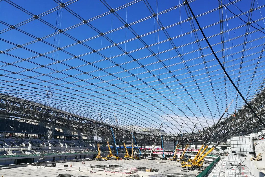 國家速滑館是2022年冬奧會北京市內唯一新建比賽場館,為世界最大跨度的正交雙向索網屋頂的體育館。索網結構更是符合綠色辦奧的要求:一是其用鋼量約為傳統屋頂的1/4;二是工廠定制、現場裝配、施工簡便、污染小,這種新型的屋面體系是速滑館項目的一大科技亮點。