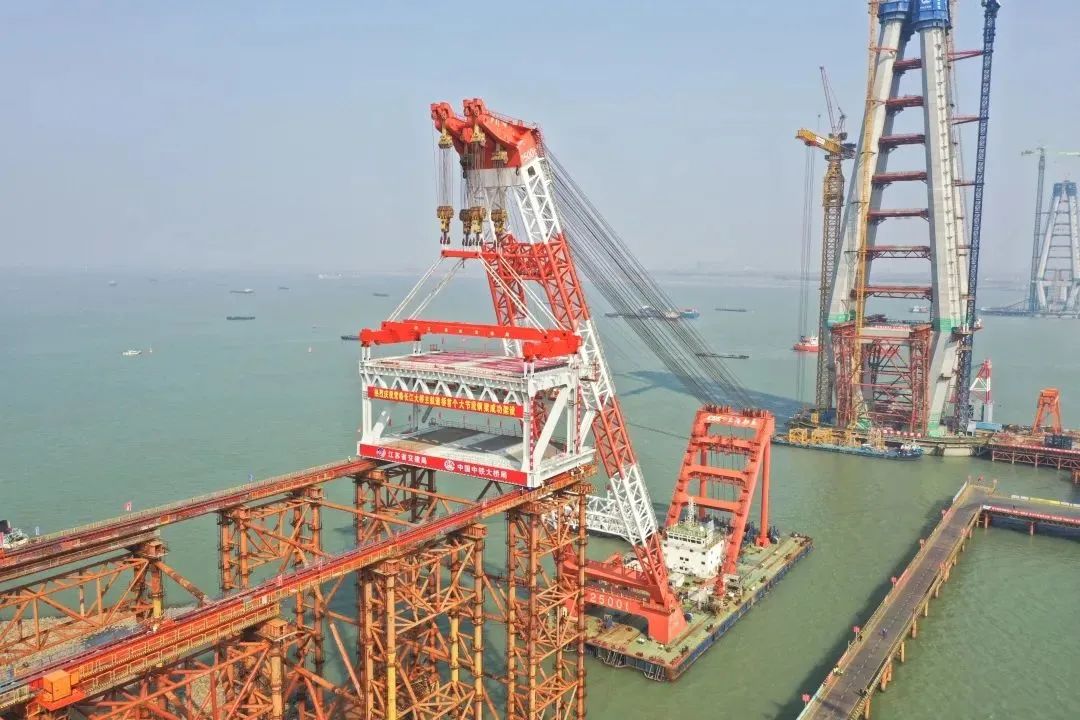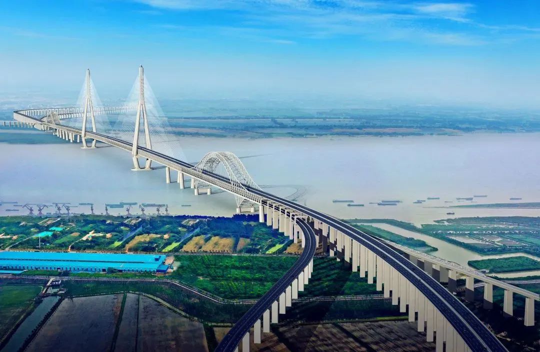 常泰長(zhǎng)江大橋是世界上首座集高速公路、城際鐵路、一級(jí)公路為一體的過江通道,其主航道為主跨1176米的斜拉橋,跨度位居世界首位,具備“四個(gè)國際首創(chuàng)”和 “六個(gè)橋梁之最”。建成后對(duì)促進(jìn)長(zhǎng)三角區(qū)域更高質(zhì)量一體化發(fā)展,加快揚(yáng)子江城市群建設(shè)具有重要意義。