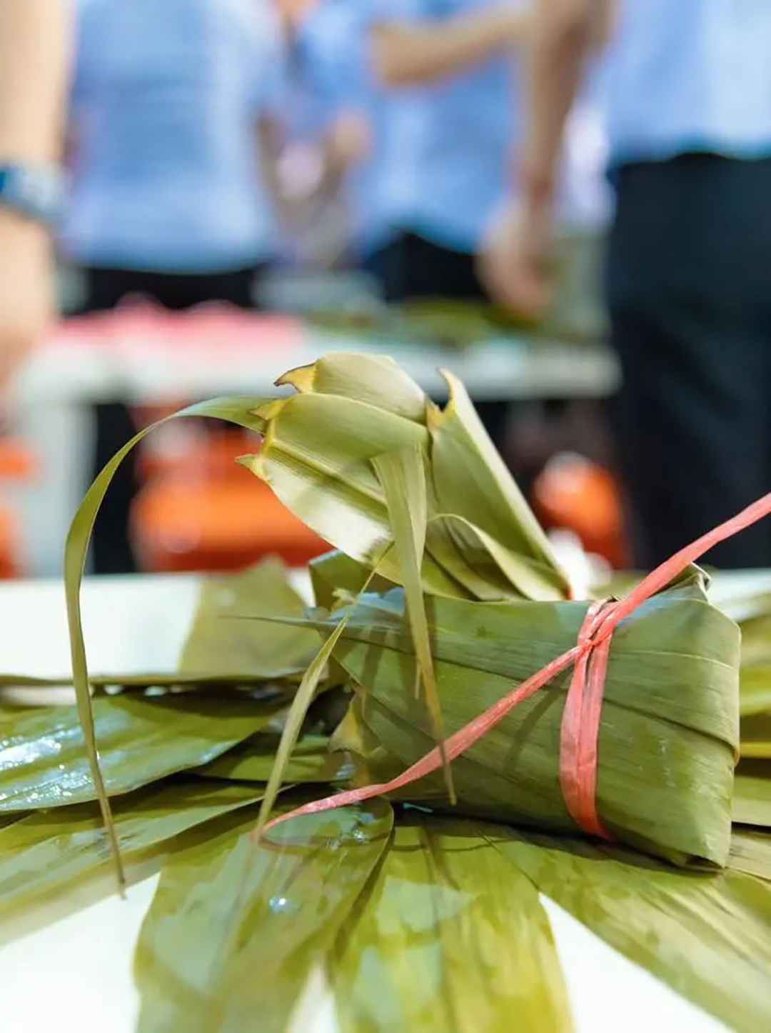 職工們其樂融融地親自動(dòng)手包粽子,